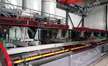 工艺流程:粗碎-细碎-一段磨矿-粗选-粗精再磨-精选-精扫选工艺流程。