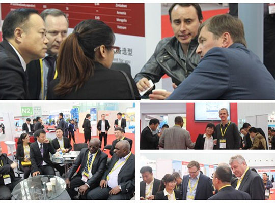 冰球突破董事长张云龙先生和苏丹客户洽谈项目,客户正在饶有兴趣的观看前面的全息投影选矿设备,在当前国内矿机市场不景气的情况下,冰球突破积极开拓海外市场,取得了巨大成功。展位上络绎不绝的国外客户,十分惹眼。