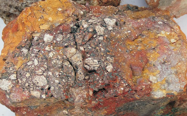 铁帽型氧化金矿是一种特殊的矿床类型,它主要由原生硫化金矿在地表经过长时间的自然氧化作用形成。这一过程通常发生在地质构造活跃、地下水丰富的区域。随着地下水和大气中的氧气不断作用于硫化金矿,其中的硫化物逐渐被氧化成氧化物,特别是氧化铁,形成了典型的“铁帽”特征。这些氧化铁等氧化矿物不仅改变了矿石的颜色,使其呈现出红褐色,而且在矿石结构中占据了重要位置,使得金以细粒或微粒的形式分布于氧化矿物的间隙或表面。