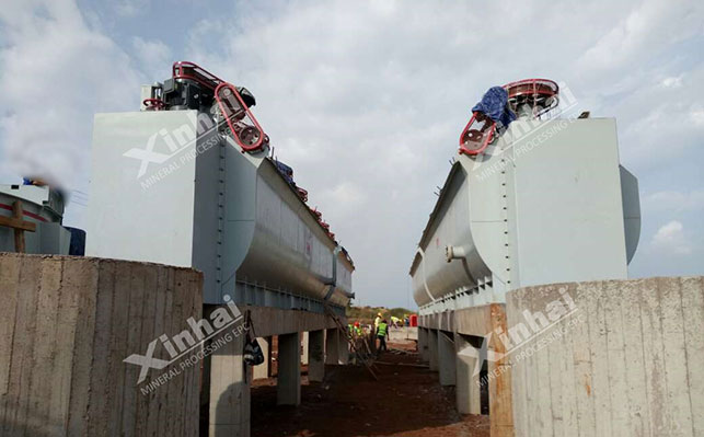 乌干达720t/d磷矿是冰球突破矿装承接的矿业全产业链服务项目,通过进行试验分析,为其设计的工艺流程为:脱泥-一段闭路磨矿-一粗一扫两精正浮选-精尾矿脱水工艺流程。该项目在满足现代化企业对生产环境的要求下,冰球突破矿装为其做到了源头治理和尾部处理相结合的原则,减少了污染。整个选矿项目投资省、建设周期短、见效快。