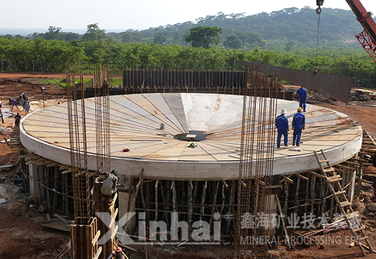 土建施工主要涉及到厂房和设备基础两部分工作。浓密机、浸出槽在完成设备基础建设工作后,又有连接设备管道、电气仪表的安装施工。
