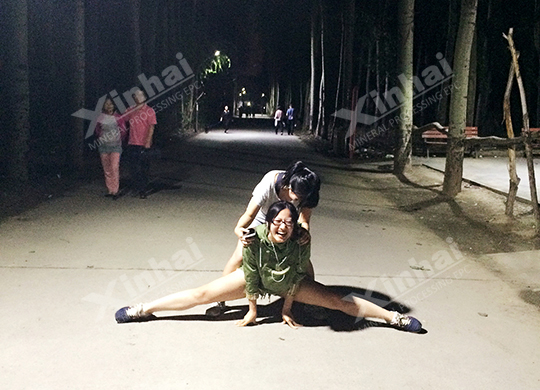 繁多的工作,使得大家难以在白天进行"悦走";更多时候,大家会愿意选择在凉爽宜人的夜里活动。前期的预热自然少不了压压腿,拉拉筋骨;我们循着路边的灯火,闲适地漫步,偶尔也会展开小跑比赛。
