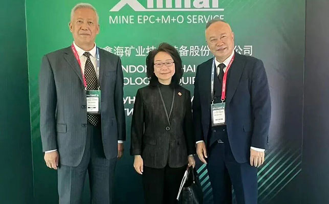 11日下午,中国驻蒙古大使沈敏娟女士、中国矿业联合会秘书长车长波先生等莅临冰球突破特装展位,与冰球突破矿装董事长张云龙进行友好交流。