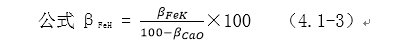 2、对于CaO与Si02的含率比不小于0.8的产品 (即βCaO/βSi02≥o.8),(并且其中βCaO+βSi02≥6%)按式4.1-3进行换算,以换算后的含铁品位定级