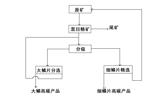 混目粗选:目的是保证鳞片尽量少破坏的前提下,排弃尾矿,减少尾矿中石墨损失;