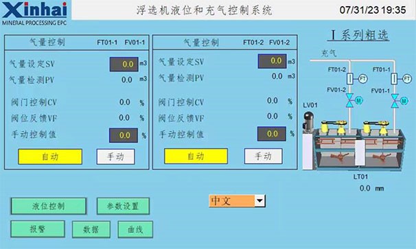 每组浮选槽就地设置操作触摸屏,便于直观、快捷地进行调整;