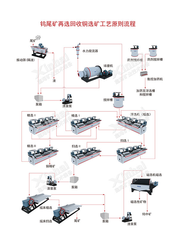 钨尾矿:冰球突破常采用重选、磁选、浮选等方法,其中重选为钨矿常用的分选工艺。重选钨矿再选利用的工艺为-离心选矿机(或湿式强磁)为主的粗选工艺、摇床-浮选为主的精选工艺充分回收钨尾矿中的有用矿物。