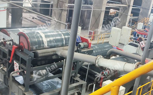 铜硫矿石的浮选方法可分为两类,分别是先磁后浮和先浮后磁两种。经过生产实践证明,选择先磁后浮流程,在磁选时磁黄铁矿会进入磁铁矿精矿,影响选矿指标。因此选矿厂常选择先浮后磁的方案:先将硫化矿浮选出来,后在尾矿中磁选磁铁矿。过程中应注意浮选硫化矿时加强对硫化铁矿的浮选,尽量将磁黄铁矿全部浮选出来,否则在磁选磁铁矿时,磁黄铁矿会混入铁精矿,影响铁精矿的质量。若磁黄铁矿混入铁精矿,必要时需要对铁精矿进行脱硫处理,采用反浮选法去除磁黄铁矿。